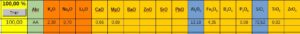 Rutile, Di-oxyde de Manganèse, Carbonate de Cobalt, Oxyde de Titane, Oxyde de Cobalt, Oxyde de Nickel, Silicate de Zirconium, et stain (colorant de masse non spécifié) pour la recette N°3 qu’on va ignorer car inconnu.