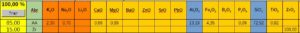 Tu composes une fritte de composition proche par assemblage des frittes dont tu disposes. Par exemple: F3124 dans la recette N°1 RMC : j’ai pris 90% de F3195 et 10% de F3134 dont je disposais. Pour F3249 dans la recette N°3 G2934Y j’ai pris 80% de la fritte F3195 et 20% de F1254. J’essaie d’avoir au moins les concentrations les plus proches en Al2O3 et SiO2. Tu n’obtiens pas exactement la même composition mais tu obtiendras un émail de ta composition.