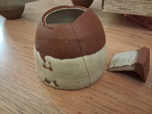 Ceci pour éviter deux risques, celui que le pot se fende comme ci-dessus et celui d’ un tressaillage de l’émail. Dans l’article sur le coefficient de dilatation thermique , je précise: « il faut que le CDT de l’émail soit inférieur à celui de la pâte. Des tolérances sont acceptables, évaluées à 10 à 15 points pour la faïence et à 1 à 5 points pour le grès et la porcelaine. »