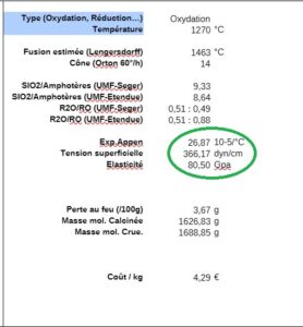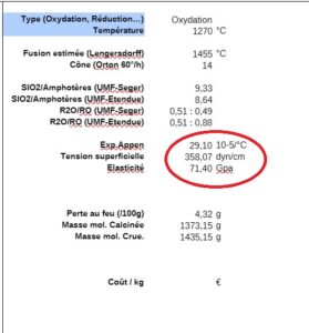 Pour chaque composant tu peux obtenir des informations dans Glazy.org en double-cliquant sur le composant. Par exemple : pour frita 174 dans la recette N°2 , l’équivalent est la Fritte 3134 que j’ai achetée chez Ceradel.