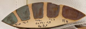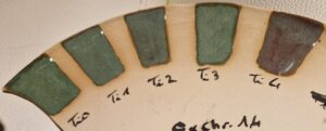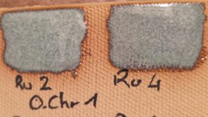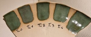 Cette première série de tests a pour but de s’assurer que l’émail est de bonne qualité, qu’il ne coule pas, qu’il s’étale bien, qu’il est de couleur verte, même si la photo ne le montre pas bien.