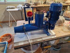 On l’appelle aussi bien extrudeuse ou boudineuse ou encore pugmill. Elle sert à mélanger, homogénéiser et dégazer l’argile avant son façonnage.