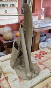 On est d’accord que ça ne ressemble pas à un chat! Pas encore. Pour monter la statue il te faut qu’elle tienne debout et que tu lui donnes une bonne assise. pendant ce temps, la terre sèche et consolide ta statue.