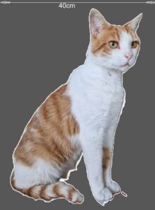 Il mesure 50cm de long des oreilles à la queue. J’imprime deux photos qui sont à l’échelle 1/2 : 1cm sur la photo correspond à 2cm en réalité. Je prends des cotes pour avoir une idée des distances cou-queue, épaule-bout de patte, nez-pointe de l’oreille…