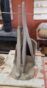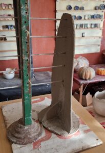On est d’accord que ça ne ressemble pas à un chat! Pas encore. Pour monter la statue il te faut qu’elle tienne debout et que tu lui donnes une bonne assise. pendant ce temps, la terre sèche et consolide ta statue.