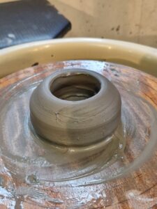 Centre ta motte, fais une gorge extérieure, aplanis le fond et crées une encoche en dedans puis rassemble ta terre avec tes deux mains