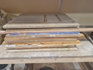 Attention à l’humidité de tes plaques. La 1ère plaque, pas de souci, tu la découpes facilement. Dès la deuxième, ça colle, tu déformes les pièces en les déposant sur le plateau d’assemblage.