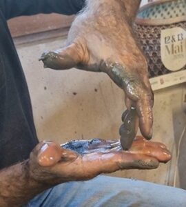 Il plante la pique pour mesurer le fond qui fait 1cm d’épaisseur.