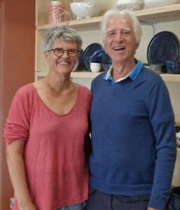 Nous utilisons du grès pour le tournage, le montage au colombin, la sculpture et le modelage d’objets utilitaires ou de décoration. Une première cuisson est faite à basse température à 980° dans des fours électriques. Après application d’émaux créés à partir de cendres végétales locales, une deuxième cuisson est réalisée à haute température à 1260° ce qui les rend les objets imperméables à l’eau et résistants aux chocs thermiques.